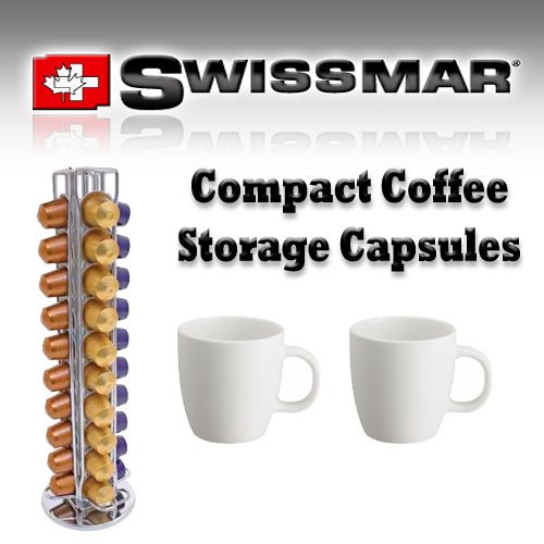Discount Swissmar 80011 Capstore Vista 40 Compact Storage Nespresso Coffee Capsules and 2 Coffee Mugs